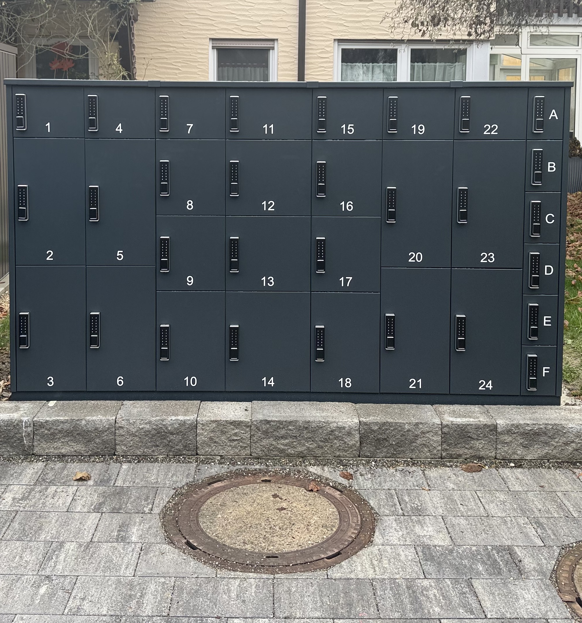 (1) Die Paketanlage besteht aus mehreren Fächern in fünf unterschiedlichen Größen.